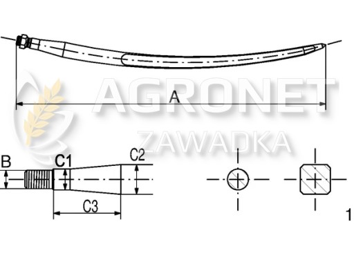 Fabrycznie nowy ząb, kuty - wysoka jakość. Wykonane z najwyższej jakości stali sprężystej wysokogatunkowej. Ząb w zestawie z nakrętką.