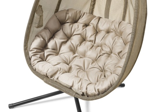 Wygodny fotel idealny do Twojego ogrodu, tarasu, balkonu czy jakiego kol wiek pomieszczenia, które chcesz wzbogacić o ciekawy design oraz poprawę komfortu wypoczynku. Stelaż został wykonany z metalu, podwójnie lakierowany proszkowo, co idealnie przystosowuje ten produkt to zastosowania wewnątrz jak i na zewnątrz. Siedzisko oraz oparcie zostało zrobione z beżowego, elastycznego obicia tekstylnego tak, aby maksymalnie zwiększyć wygodę. Posiada dodatkowo jedną płaską poduszkę na siedzisko, oraz drugą widoczną na zdjęciu bardzo miękką i puszystą. Użyte materiały nie wymagają częstej konserwacji, są odporne na warunki pogodowe i nie wymagają specjalnych środków do pielęgnacji. Nóżki są dodatkowo zaopatrzone w nakładki z tworzywa sztucznego.