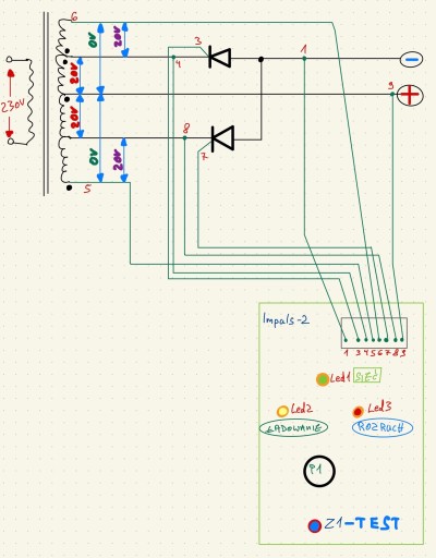 Mamy również schemat podłączenia płytki i schemat układu niezbędnego do jej poprawnego działania - gdyby ktoś chciał sobie np. zbudować "replikę" takiego prostownika.