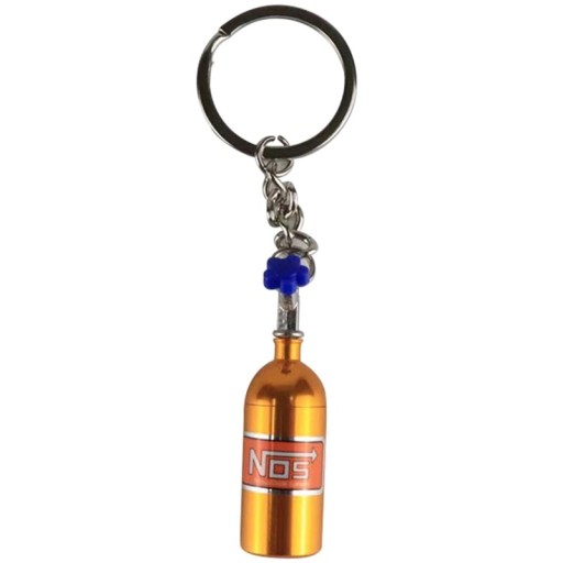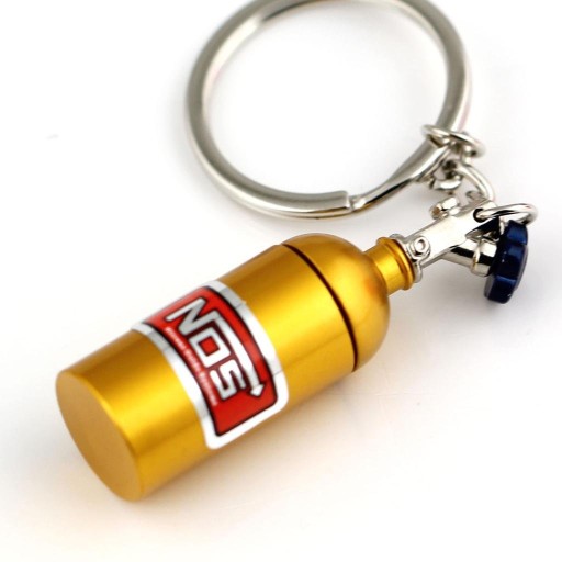 Ten metalowy brelok to miniaturka butli NOS, używanej jako dopalacz samochodowy. Ucieszy każdego fana motoryzacji i tuningowanych aut. Przy jego pomocy podrasujesz swoją brykę i szybciej dojedziesz do celu. Odkręcana pokrywa butli pozwoli zatankować do środka ulubione paliwo.