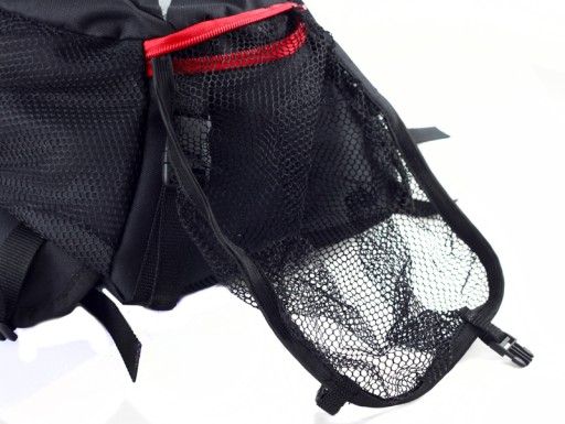 Plecak został wyposażony w regulowany pas piersiowy oraz biodrowy spinane na zatrzaski, profilowane szelki oraz delikatnie usztywnione plecy.