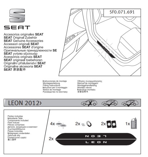 - Zakres dostawy: 1 zestaw = 2x podświetlane listwy progowe dla dwóch przednich drzwi wraz z instrukcją montażu