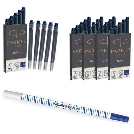 ✔️ naboje atramentowe Parker Quink - do wszystkich piór wiecznych Parker z dużym zasobnikiem i zbiorniczkiem zapasowym informującym o kończącym się atramencie