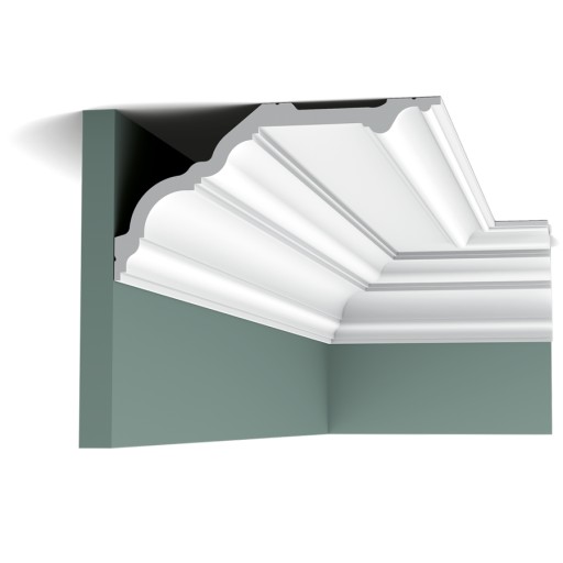 Duży gzyms C340 z przedłużeniem dolnej części profilu. Gzyms do dużych projektów i dużych powierzchni.