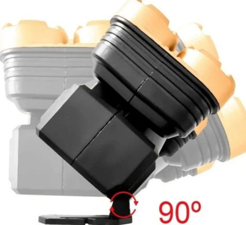 - Regulowana głowica latarki pozwala na dostosowanie jej nachylenia do swoich potrzeb w zakresie 90°.