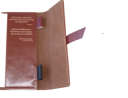 - jaka dedykacja w wewnątrz notesu.