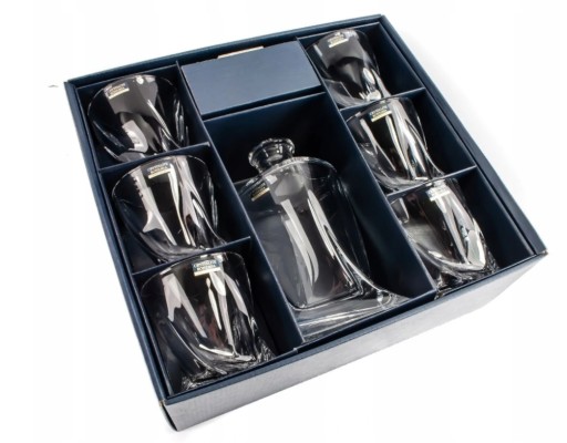 Zestaw do whisky Quadro został wykonany z najwyższej jakości szkła kryształowego przez znaną na całym świecie czeską firmę Bohemia. Absolutna przejrzystość i niepowtarzalny kształt sprawią, że idealnie wkomponują się w każde wnętrza, zarówno te nowoczesne, jak i te klasyczne. Doskonale nadaje się do szlachetnych trunków, jakim jest niewątpliwe whisky. Komplet może być także codzienną ozdobą naszego barku. Dzięki wysokiej jakości wykonania mamy pewność, że produkt posłuży nam przez wiele lat. Jako, że jest to szkło kryształowe, zalecamy myć ręcznie,aby szkło było tak samo idealnie przejrzyste.
