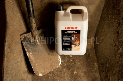 Opakowanie zawiera 5L plastyfikatora do betonu BETONMIXU marki JURGA.