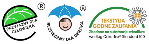 Zapewniamy iż nasze produkty są bezpieczne, nie używamy tkanin zawierających metale ciężkie, pestycydy i formaldehydy. Poniżej znajdują się certyfikaty jakie posiadają nasze tkaniny.
