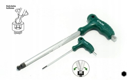 Solidny i wygodny w użytkowaniu klucz trzpieniowy, dwustronny typu IMBUS, wraz uchwytem.
