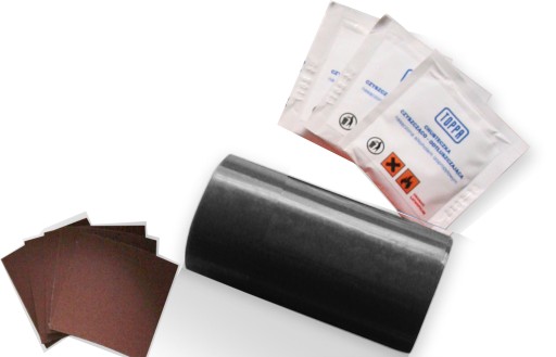 Każdy zestaw zawiera chusteczki odtłuszczające oraz papier ścierny umożliwiające łatwe przygotowanie plandeki do klejenia łaty TOPPA.