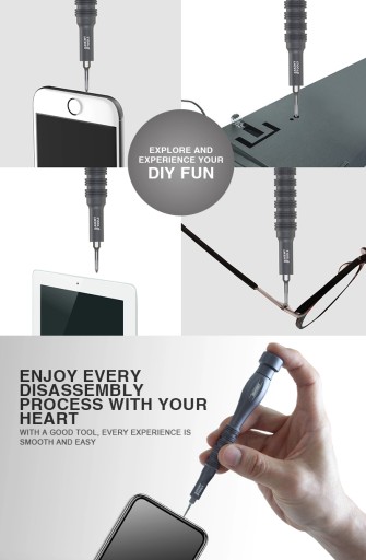 - 4 nasadki płaskie Flathead: 1,0, 1,5, 2,0, 2,5mm (modele iPhone, smartfony itp)