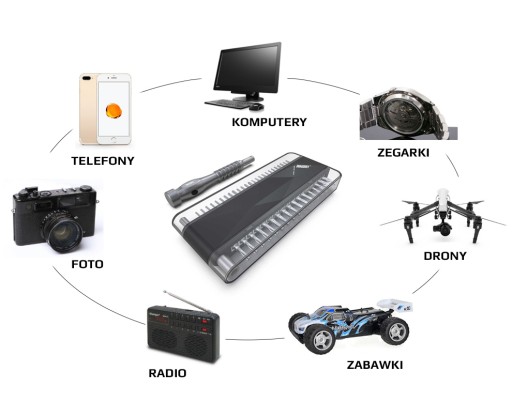 - magnetycznie mocowana do podłoża obudowa z funkcją mocowania do paska spodni bądź zawieszenia
