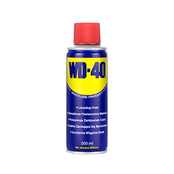 WD - 40 to wielofunkcyjny preparat, który: czyści i konserwuje, likwiduje skrzypienie i piski, usuwa wodę, poluzowuje zardzewiałe części, uwalnia zacinające się mechanizmy, zabezpiecza metalowe powierzchnie przed korozją. Nie zawiera silikonu.