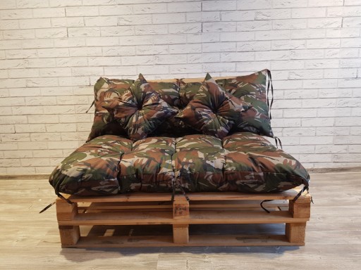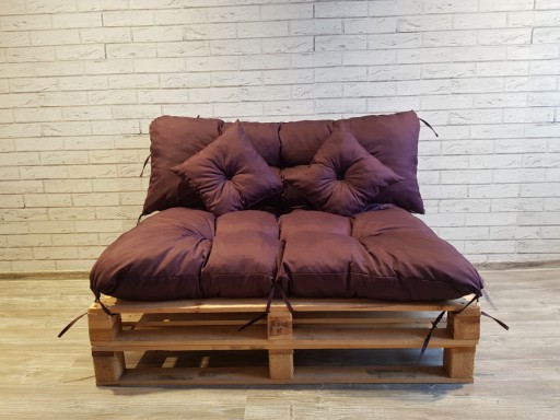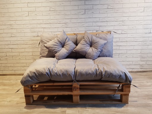Poduszki wypełnione sa granulatem z gąbki , pikowane, cztery wiązania w każdej poduszce w kolorze materiału pozwalają stabilnie zamocować poduszkę mebli z palet.