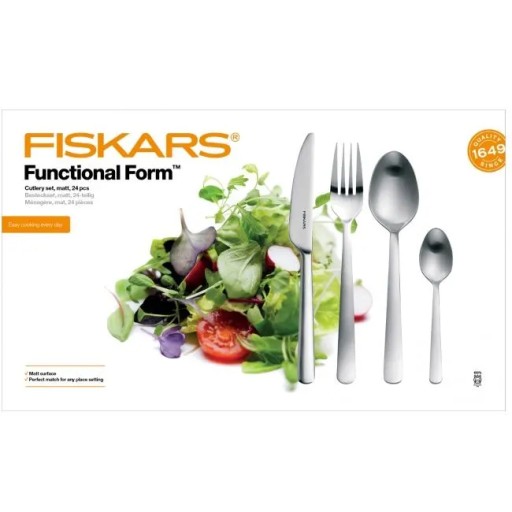 Komplet sztućców marki FISKARS, to połączenie klasycznego wzoru z nowoczesnością.