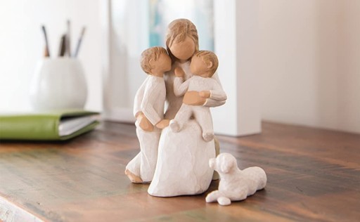 Każda obecnie produkowana figurka, która zagości w Państwa domu jest ręcznie malowana. Jej ekspresja ujawnia się poprzez gesty… pochylenie głowy, ułożenie rąk, pozycja ciała. Uproszczenie formy i brak twarzy poszczególnych figurek są bardzo istotne dla Willow Tree. Susan ma nadzieję, że będzie to dla Państwa nie bez znaczenia i pomoże w dokonaniu odpowiedniej interpretacji zarówno dla osoby dającej jak i obdarowanej.