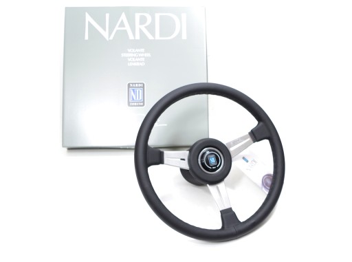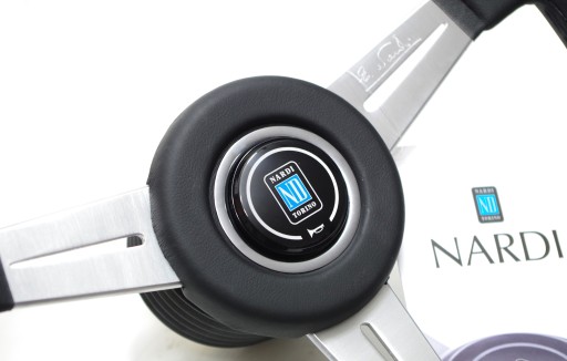 - Dodatkowe informacje: kultowa ręcznie robiona skórzana kierownica w kolorze czarnym z czarnym klaksonem, ramiona wykończone w satynowym szczotkowanym aluminium, średnica obręczy 360mm, w komplecie również klakson, naba i adapter