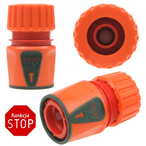 Wysokiej jakości szybkozłączka wyposażona w system STOP pozwalająca w łatwy i szybki sposób na przyłączanie i odłączanie urządzeń zraszających oraz węża do kranu. System STOP pozwala na natychmiastowe zatrzymanie wody podczas odłączania zraszacza. Złączka posiada wyprofilowane ząbki, które pozwalają na solidne zamocowanie końcówki na końcu węża 3/4". Szybkozłączka zapewnia szczelne połączenie, dzięki czemu woda nie wycieka na zewnątrz. Aby rozłączyć wąż, należy jedynie obrócić część żeńską o ćwierć obrotu i odciągnąć ją od części męskiej. Jest kompatybilna ze wszystkimi złączkami dostępnymi na rynku. Produkt został wyprodukowany w Polsce.