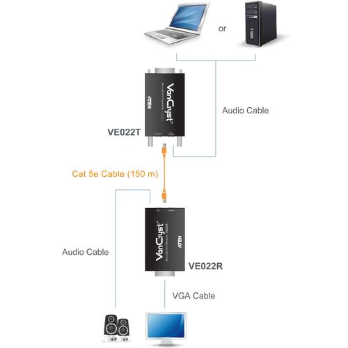 - Przedłużenie sygnału audio-wideo za pomocą przewodu Cat 5e na odległość do 150 m