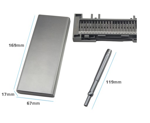 ZESTAW PRECYZYJNYCH BITÓW DO MIKROELEKTRONIKI Z UCHWYTEM MAGNETYCZNYM I ETUI