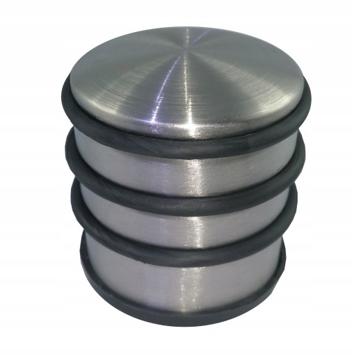 Odbojnik metalowy do drzwi i okien, wolnostojący, ciężki stojący. Montowany do podłogi w miejscach gdzie nie możliwe jest wkręcenie lub przyklejenie, blokuje lub ogranicza nieporządane otwieranie drzwi. Gumowa osłona chroni drzwi lub okna przed uszkodzeniem.