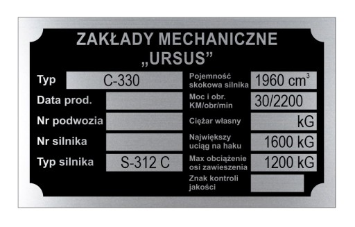 ТАБЛИЧКА URSUS C 330 C330 - ШТАМПОВАННАЯ