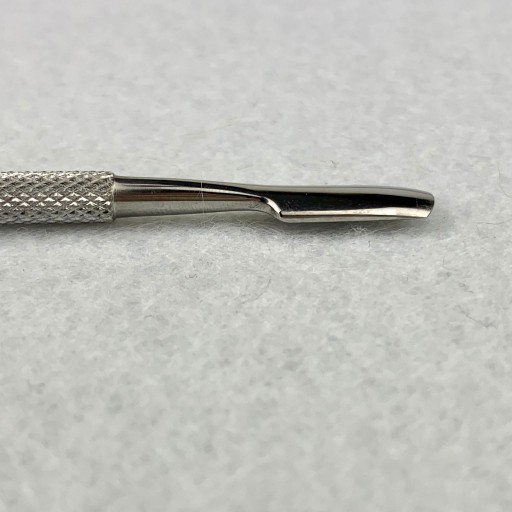Dwa precyzyjnie uformowane zakończenia to dłutko wklęsłe służące do odpychania skórek do środka oraz ostre dłutko półokrągłe do bocznego usuwania skórek z paznokci.