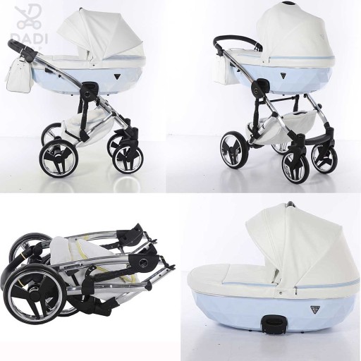 Wózek dziecięcy Junama Candy to nowoczesny wózek wielofunkcyjny. Wózek wykonany z białej eco skóry w połączeniu z delikatnymi, pastelowymi kolorami zachwyca swoim wyglądem. Elegancki stelaż dodaje wózkom elegancji. Supernowoczesne technologie, sprawiają, że wózek jest komfortowy i funkcjonalny.