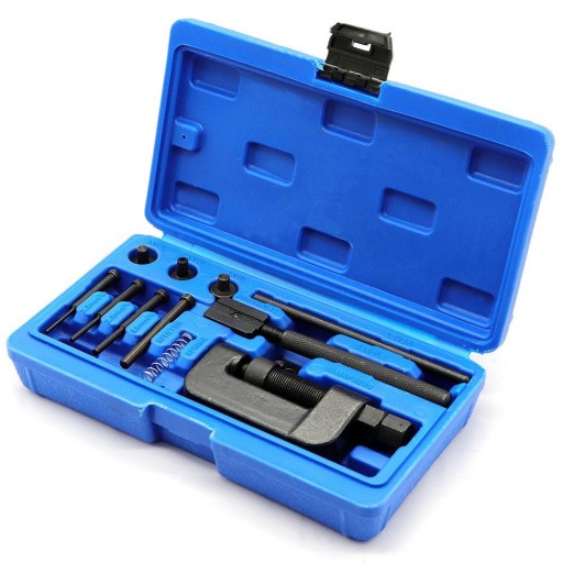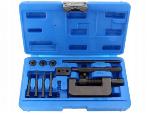 - Uniwersalny przyrząd do zakuwania i rozkuwania łańcuchów motocyklowych, samochodowych o rozmiarach do 630. Może być stosowany do wszelkich typów łańcuchów napędowych.