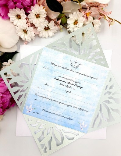 PRZEDMIOTEM SPRZEDAŻY SĄ PIĘKNE ZAPROSZENIA NA CHRZCINY ORIGAMI. ZAPROSZENIA SĄ JEDYNE W SWOIM RODZAJU. WYKONANE Z NAJWYŻSZEJ JAKOŚCI PAPIERU. ZAPROSZENIA MAJĄ WYDRUKOWANE DANE TAK BY TYLKO WYPISAĆ INNE INFORMACJE TAKIE JAK: IMIĘ I NAZWISKO ZAPRASZANEJ OSOBY, DATA, MIEJSCE. PERSONALIZACJA NA ŻYCZENIE. INNE KOLORY NA POZOSTAŁYCH AUKCJACH.