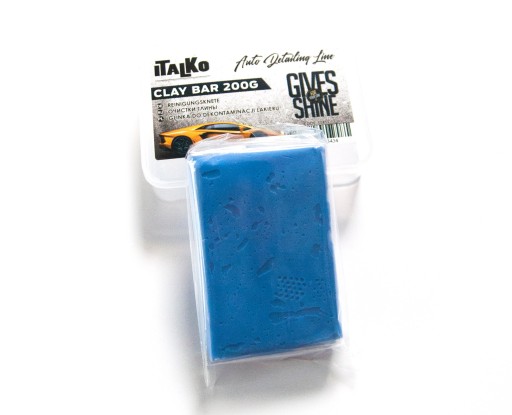ITALKO Clay Bar- to glinka do lakieru o średniej agresywności, która nie rysuje lakieru, przeznaczona do usuwania wszelkich zanieczyszczeń z karoserii takich jak: smoła, soki z drzew, nalot drogowy itp. Po jej zastosowaniu lakier jest już przygotowany do dalszego procesu detailingu. Daje się łatwo ugniatać, a jako lubrykantu wystarczy użyć jedynie samej wody.