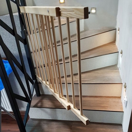 Bramka zabezpieczająca wraz z elementami montażowymi (dodawane w zestawie) waży około 4 kg. Jej ciężar to zaleta, gdyż świadczy o wysokiej jakości produktu - szczególnie tych wykonanych z drewna.