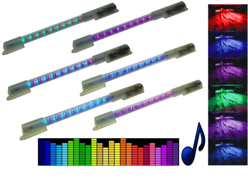Tuba led posiada wbudowany czujnik dźwięku dzięki czemu może np. migać w rytm muzyki lub głosu. Tuba posiada regulację czułości na bocznym panelu, dzięki której możemy pokrętłem dostroić czułość mikrofonu i reakcje świetlną tuby na dźwięk w zależności od jego głośności.