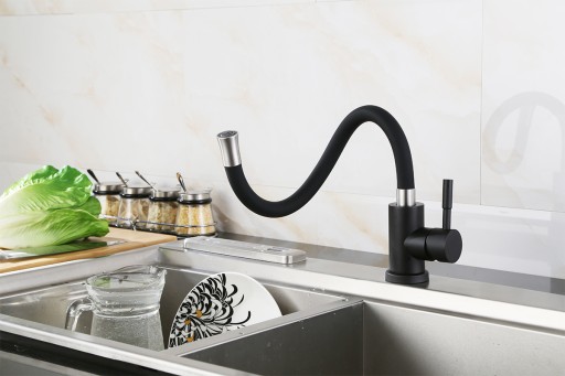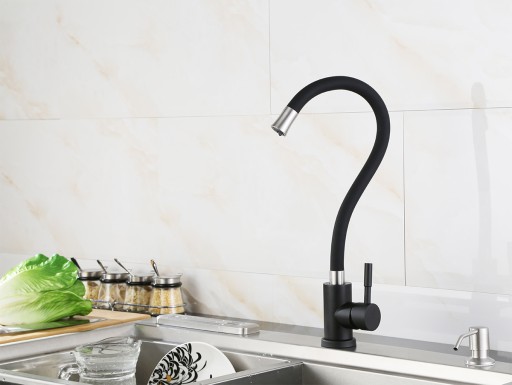 Flex czarna bateria kuchenna łazienka, elastyczna, obrotowa wylewka, wężyki, Stal nierdzewna SUS304