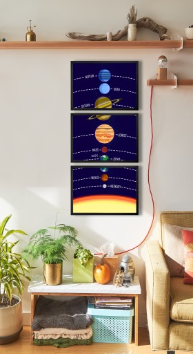 ZESTAW 3 PLAKATÓW W RAMKACH A3 Z PLANETAMI UKŁADU SŁONECZNEGO (ŁĄCZNA WYSOKOŚĆ ZESTAWU TO 93 CM, A SZEROKOŚĆ 43CM)
