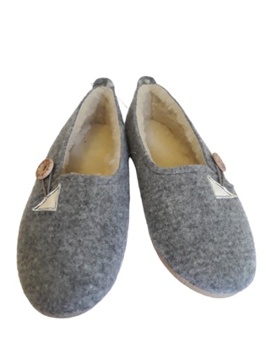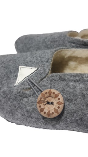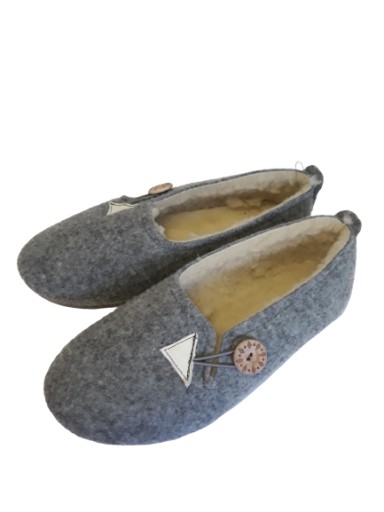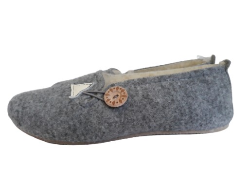 Pantofle wykonane są z tkaniny filcowej, ocieplane w środku naturalną wełną.