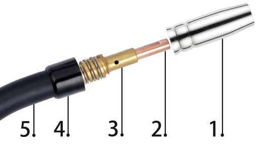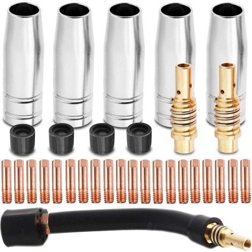 Zestaw podstawowych elementów niezbędnych do uzbrojenie każdego uchwytu spawalniczego MIG/MAG o standardzie MB 15