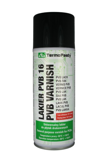 Szybkoschnąca przezroczysta powłoka PVB o dobrych właściwościach izolacyjnych. Zabezpiecza przed korozją płytki drukowane i inne elementy pracujące w niesprzyjających warunkach atmosferycznych. Powłoka chroni płytki drukowane przed powstawaniem prądów błądzących i zwarć.