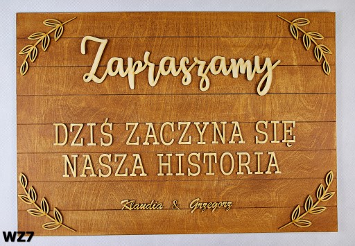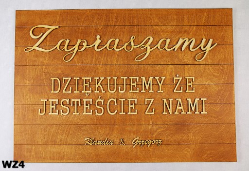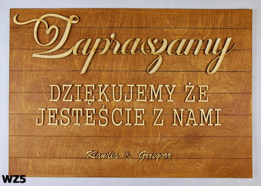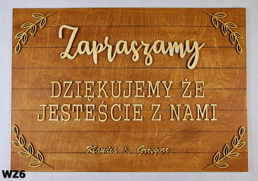 Drewniana personalizowana tablica powitalna 3D - "Dziękujemy że jesteście z nami" w 7wzorach do wyboru.