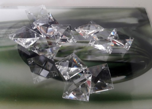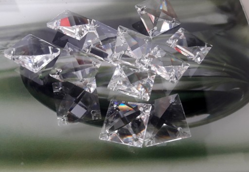 Kwadrat kryształowy o wymiarach 18x18 mm z 4 otworami mocującymi.