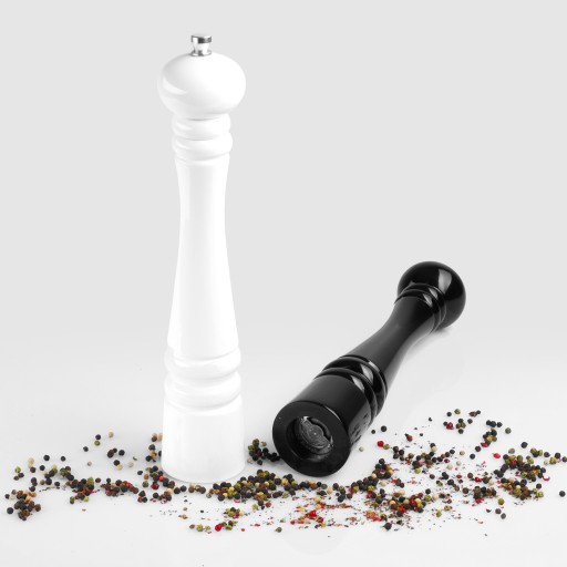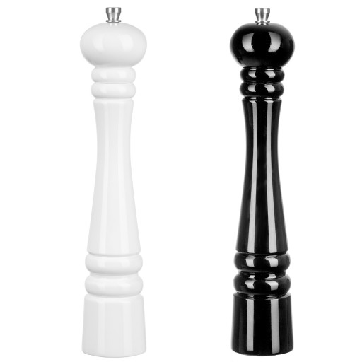 - Drewniany zestaw do pieprzu i soli o wymiarze 32 cm w kolorze białym i czarnym - z metalowym mechanizmem mielącym.