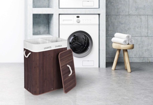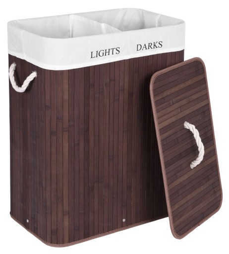 Wykonany z naturalnego bambusa kosz do gromadzenia brudnej odzieży i bielizny przed praniem. Bardzo praktycznym rozwiązaniem jest zastosowany tutaj podział zawartości pojemnika na dwie części, z przeznaczeniem na odzież jasną i ciemną. Prosty i naturalny wygląd sprawia, że pojemnik wkomponuje się w każde pomieszczenie. Zaletą kosza bambusowego jest niewątpliwie elegancki wygląd, przeważający szalę nad zwykłymi pojemnikami z tworzywa. Kosz wyposażony został w wewnętrzny wyjmowany materiałowy wkład, który nie pochłania wilgoci i nieprzyjemnych zapachów. Konstrukcja pojemnika jest stabilna i sztywna.