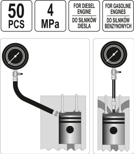 MIERNIK CIŚNIENIA SPREŻANIA W SILNIKACH DIESLA I BENZYNOWYCH. 50 ELEMENTÓW.