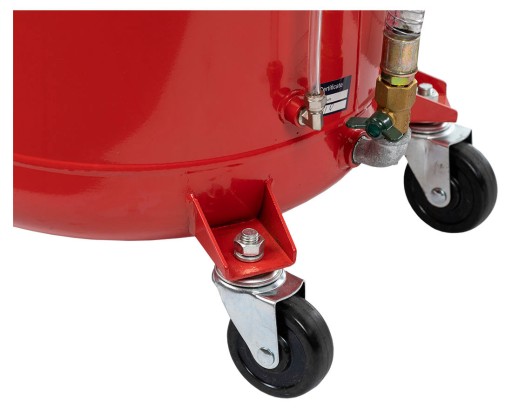 Zlewarko-wysysarka wyposażona została w wygodny uchwyt do przesuwania oraz dwa kółka, które umożliwiają łatwe przeniesienie urządzenia w dowolne miejsce w Twoim warsztacie. Bez problemu wyjedziesz też tą zlewarką na zewnątrz, gdy w środku zabraknie miejsca!