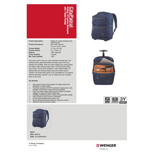 Рюкзак Wenger CityPatrol 16" 602810 на колесах