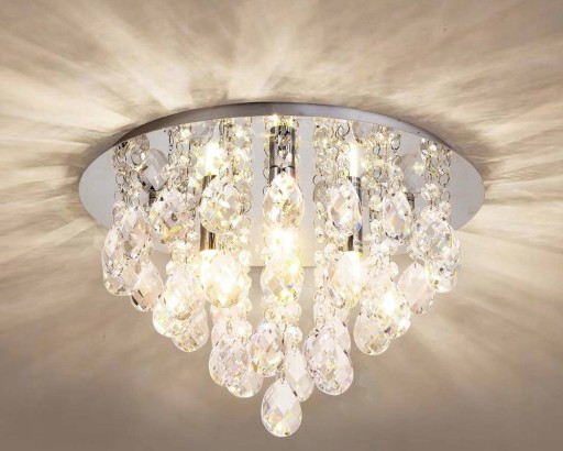 Plafon został wykonany z wysokiej jakości metalu odpornego na zarysowania czy uszkodzenia mechaniczne. Całego charakteru i eleganckiej nuty dodają kryształy rozmieszczone na niemal całej powierzchni lampy.