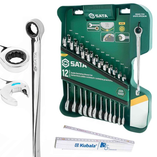 - SATA Zestaw 12 sztuk kluczy płasko-oczkowych z podwójną grzechotką + klucz płasko oczkowy X-Beam.