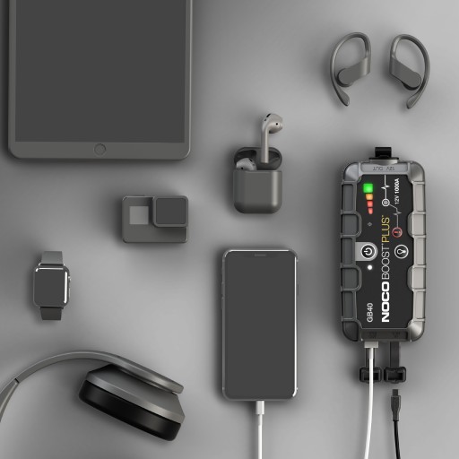 - Zawartość opakowania - GB40 Bardzo bezpieczne przenośne urządzenie rozruchowe, litowe do akumulatorów wytrzymałe zaciski akumulatorów, 12-woltowa ładowarka samochodowa, kabel ładujący Micro USB, torba z mikrofibry, instrukcja obsługi. Zaprojektowane w USA