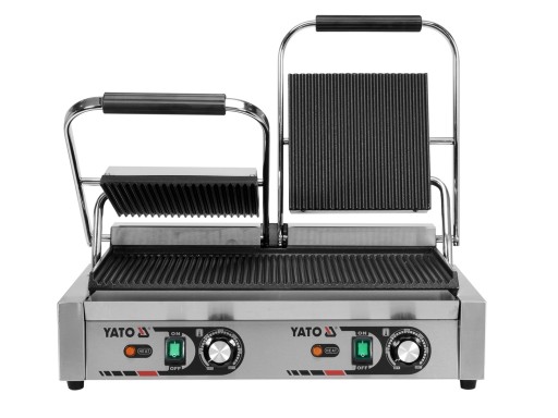 Grill kontaktowy marki YATO sprawdzi się w rozmaitych lokalach gastronomicznych, barach szybkiej obsługi, na stacjach benzynowych oraz w warunkach domowych umożliwiając jednoczesne obustronne grillowanie mięs, warzyw, podgrzewanie bułek do hot-dogów, kebaba, panini a także zapiekanie różnego rodzaju produktów spożywczych. Urządzenie posiada certyfikat zgodności CE wymagany przez Sanepid.